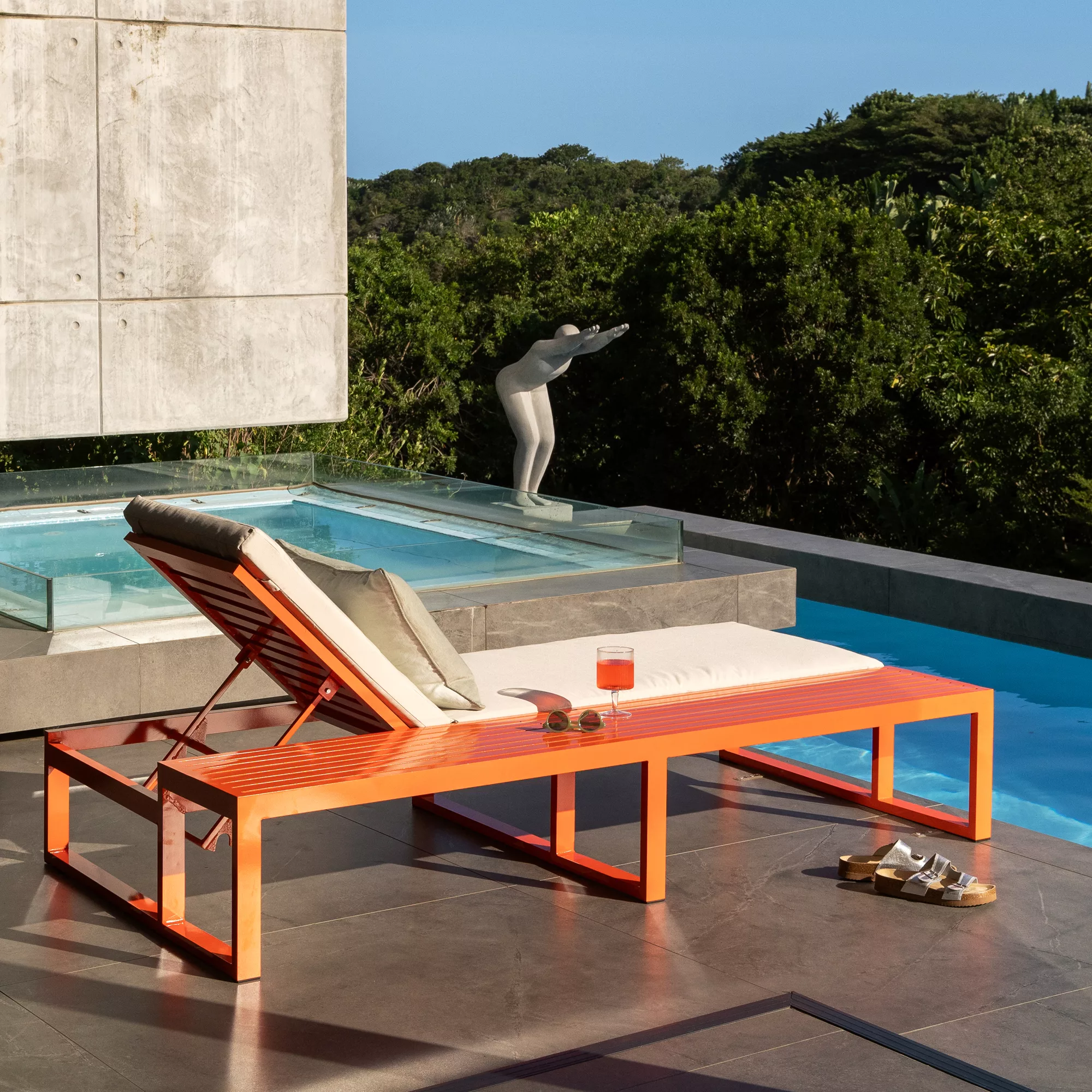 Introducing the Crystal Pool Lounger with Built-in Full-Length Side Table: Where Function Meets Sophistication
