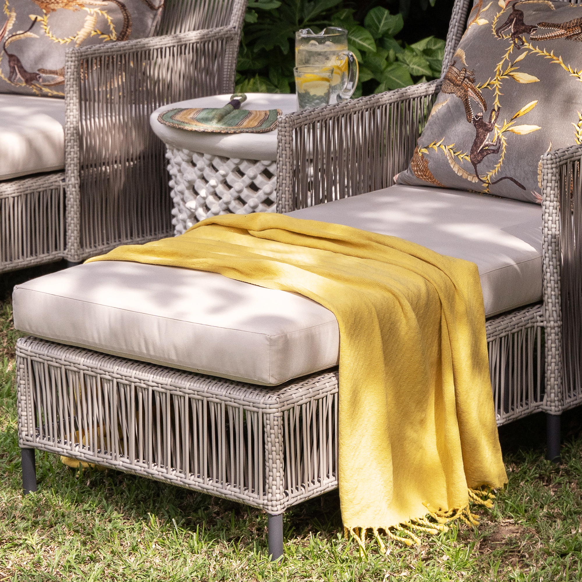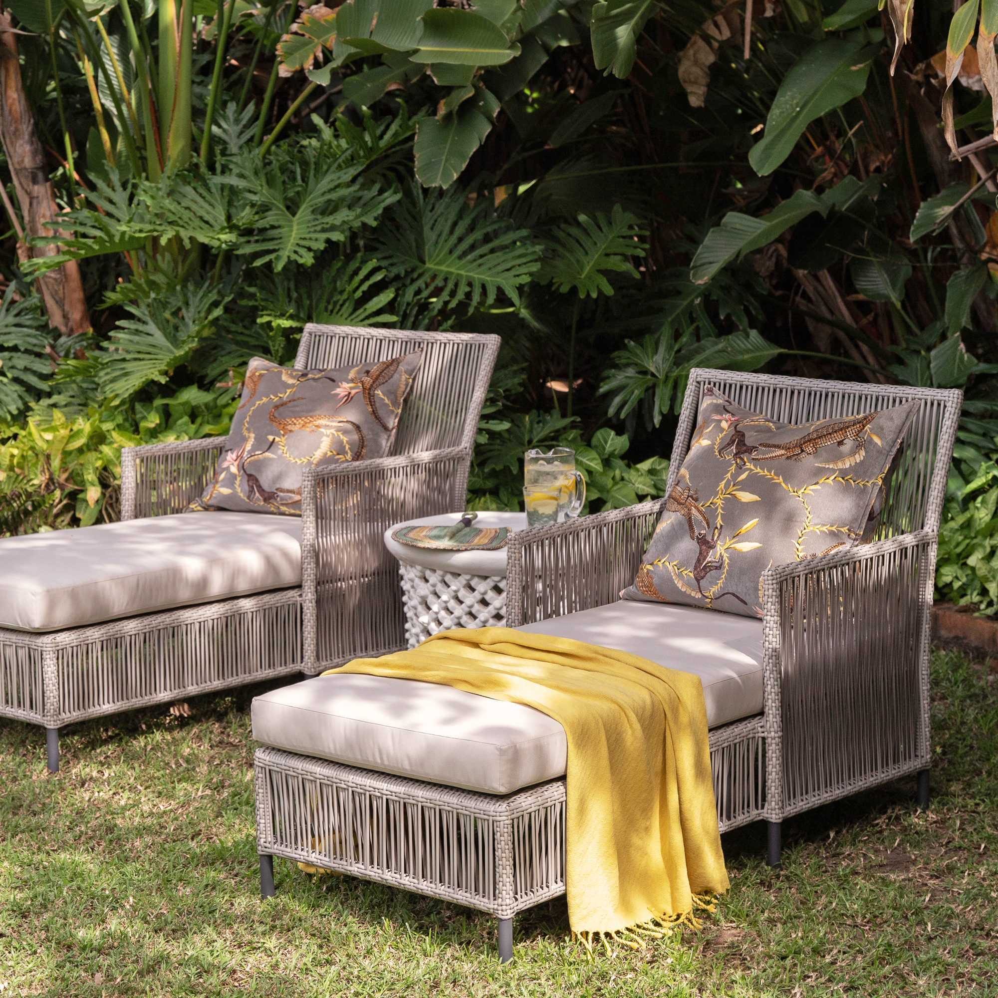 Enhancing the allure, the Enhle Pool Lounger boasts exquisite vertical weave details on the sides, adding a touch of artistry to its already captivating design.