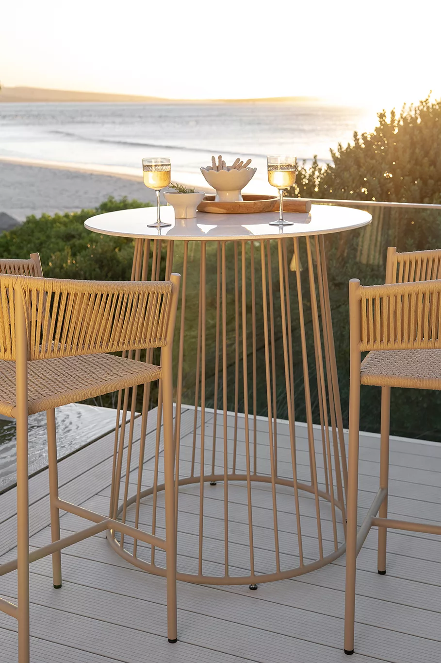 The Savanne Bar Table brings together modern design and timeless craftsmanship. Its slim aluminium frame and glossy Aura Stone top create a clean, elegant look that works beautifully in both indoor and outdoor spaces.