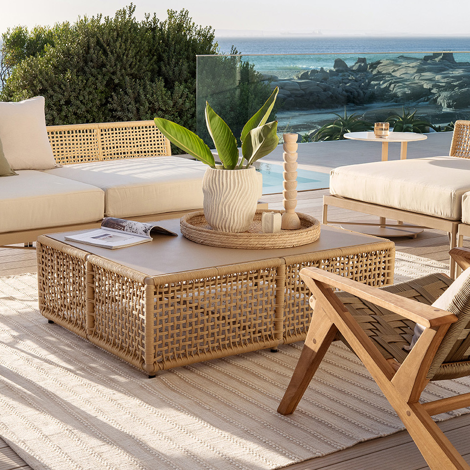 Complete your outdoor space with the Zoë Coffee Table, a standout piece from the Zoë Modular Collection. Its low-profile design brings a refined bohemian feel, blending contemporary style with handcrafted charm.